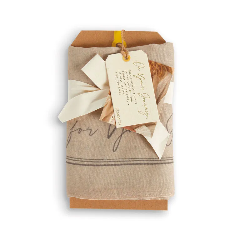 - On scarf: Love on your journey, the journey you’re on isn’t always easy…but you’re never traveling alone. You are surrounded, always, by the wishes and hopes of all the people who love you. Wrap yourself up tightly in their love…