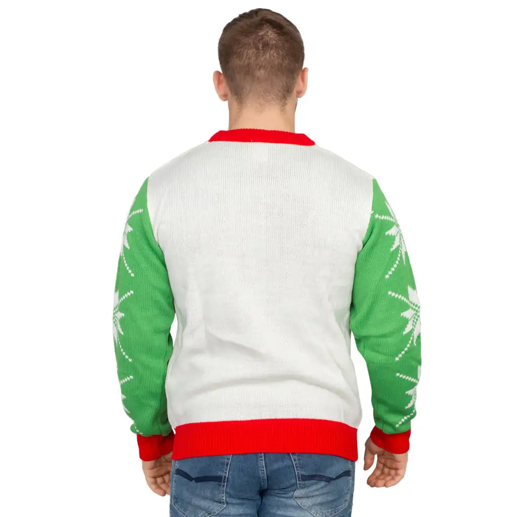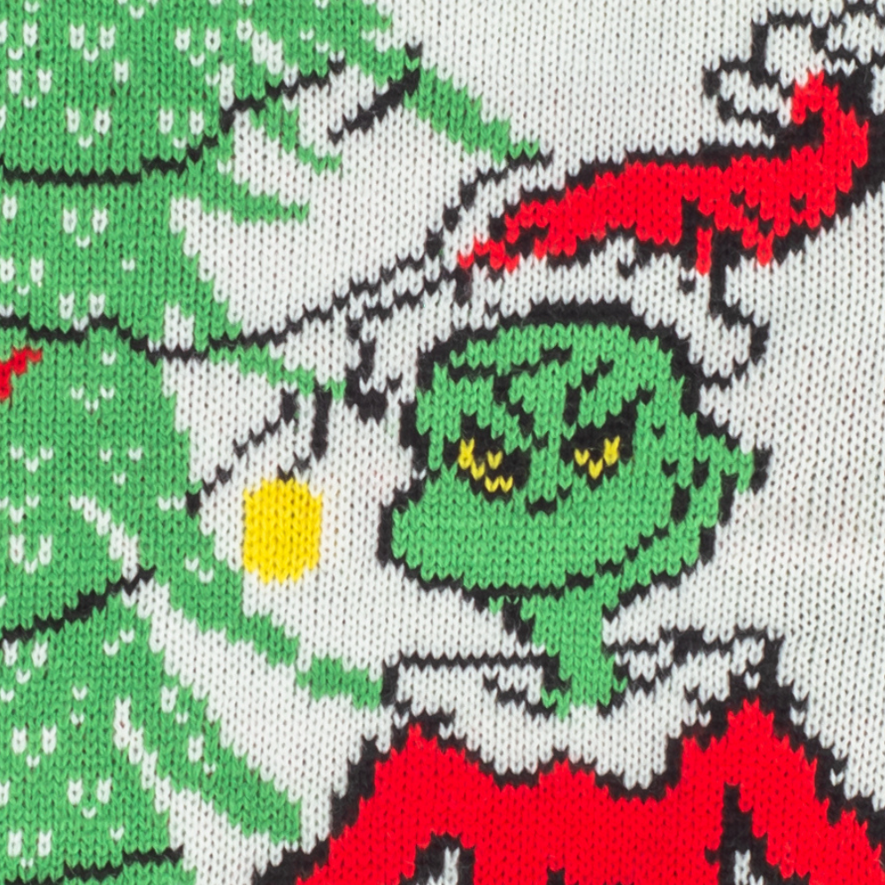Are you a fan of Dr. Seuss’s The Grinch Who Stole Christmas? Does The Grinch make you feel as tipsy as one of Santa’s special elves? We are as well, and that’s why we have crafted this hilariously ugly kids-like design of the Grinch as Santa. Our Dr. Seuss Grinch as Santa next to tree ugly holiday sweater is a fun way to pay tribute to Dr. Seuss but also show up to your next work holiday party for the ugly Christmas sweater contest. There’s a fine line between ugly and cool, and this Seuss sweater treads that line…