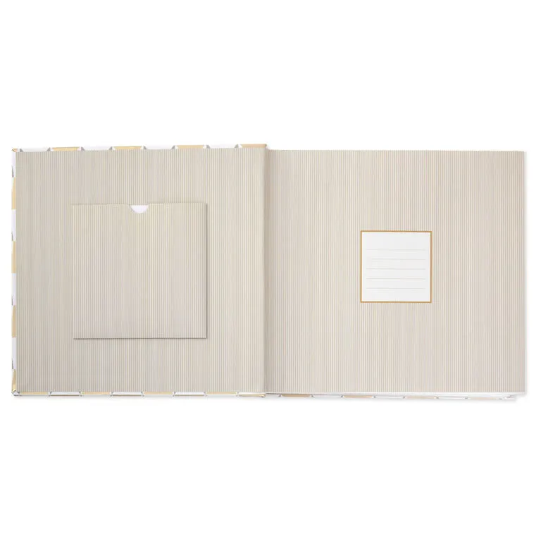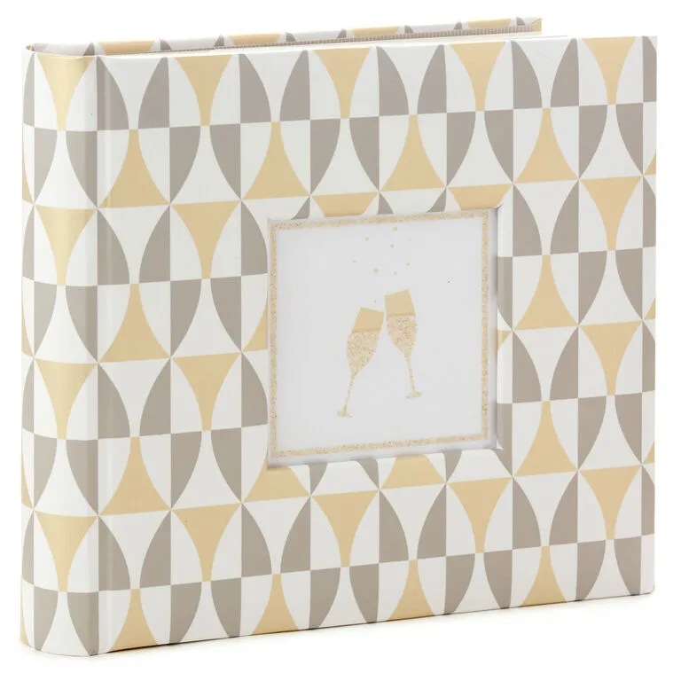 Share and relive special moments when you keep your pictures in this white and gray geometric patterned photo album. Cover celebrates a toast with two glittery champagne flutes in a 4×4 window insert that can be customized with your own photo. Each of 100 pages holds two 4×6 photos and includes lines for journaling. Album features a dedication page and designed endliners.