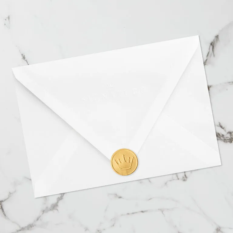 - Includes one card and one lined envelope with a Gold Crown seal. Envelope color may vary.