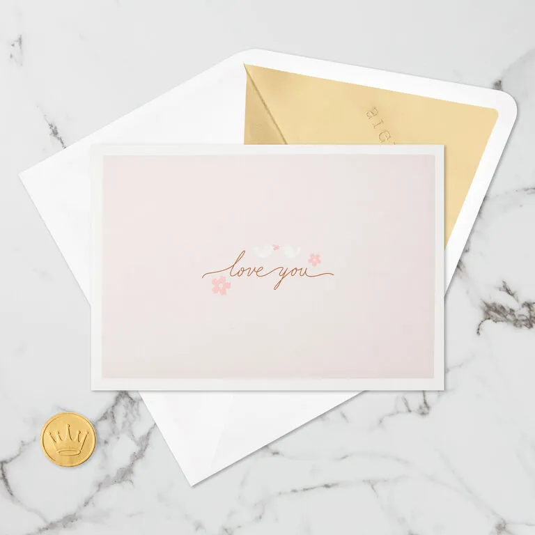 Pop-up Valentine’s Day greeting card features a “Love you” message and tiny white birds on a soft pink background. Simply open the card to reveal the 3D pop-up surprise inside—no assembly required: an intricate, laser-cut cherry tree pops up, with a froth of pink glittery blooms and a white swing hanging from its branches. This romantic card crafted from premium card stock is a work of art sure to be displayed all year long, making it an unforgettable way to share a message of love on Valentine’s Day. When open, card lays flat for display; 3D pop-up inside measures approx. 5.75″ H.