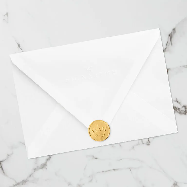 - Includes one card and one envelope with a Gold Crown seal. Envelope color may vary.