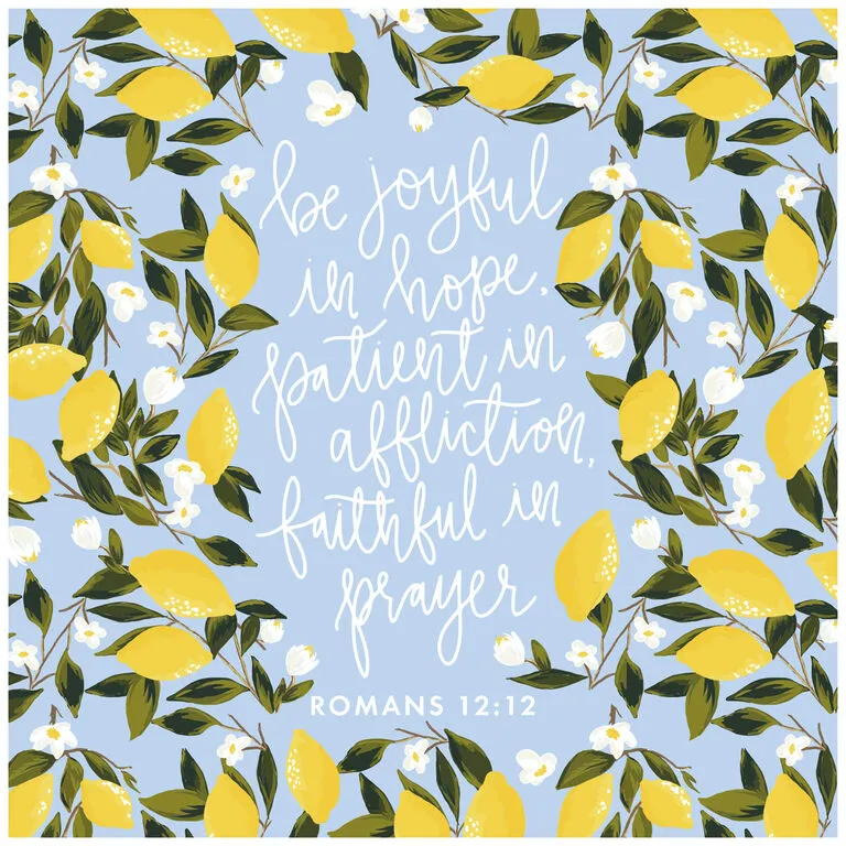 Squeeze some inspiration out of everyday moments with this fun puzzle from Mary Square. Hallmark exclusive puzzle includes 750 pieces and provides hours of fun and relaxation as you put it together. Jigsaw puzzle features pretty lemons, leaves and flowers surrounding a Scripture verse from Romans 12:12. A mini poster of the design is also included in the fun, cylindrical puzzle packaging.
