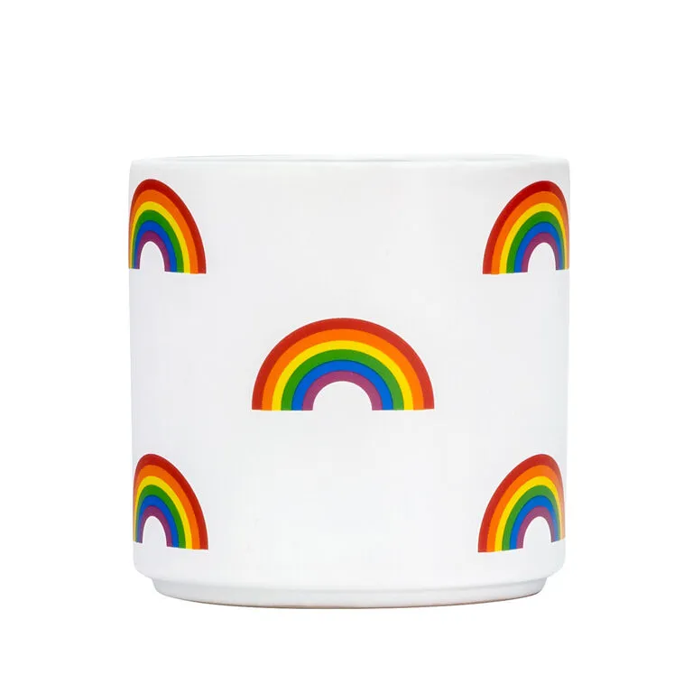 Show off your nurturing nature with this colorful rainbow-designed planter. White ceramic planter with bright rainbow pattern makes a great gift idea for a green-thumbed friend and ally—especially when you add a hardy houseplant (not included).