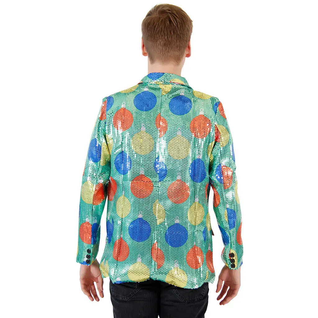 Who doesn’t love balls? Now you can show your love of the holidays by wearing this Sequin Ornaments Blazer Jacket. Our blazer jackets are one-of-a-kind creations made from 100% polyester material and so fashionable that you’ll dazzle all of your friends at your next holiday work party. Our Sequin ugly holiday jackets come in a variety of sizes and are all hand washable.