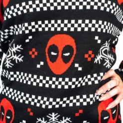 Women’s Deadpool Holiday Snow Stripes Ugly Christmas Sweater