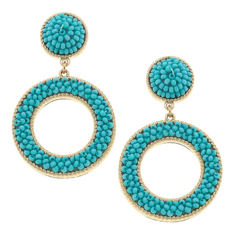 Wow them with your bold fashion sense when you wear this statement accessory. Vibrant aqua seed beads cover this worn-gold plated pair of drop earrings. The fun and unique earrings would add a punch of color to your outfit or make a lovely gift for her birthday, holiday or just because.
