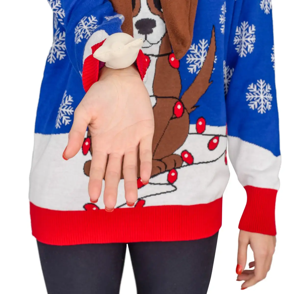 There are ugly Christmas sweaters out there and then there are these new, special, crazy 3D ugly Christmas Flappy sweaters. After now having made 3-D sweaters in the last few years, we wanted to start to create a new kind of ugly holiday sweater: The Flappy ugly Christmas Sweater. Featuring our special technology, when you wear this super cute and very ugly Women’s Flappy Dog Animated Puppy Ears Ugly Christmas sweater, the doggies’ ears inflate and move about while you’re wearing the sweater automatically. Now you can be the hit of your next holiday party when you draw attention to your unique holiday sweater when you wear this perfect ugly Christmas sweater this season — you’ll feel as tipsy as one of Santa’s elves.
