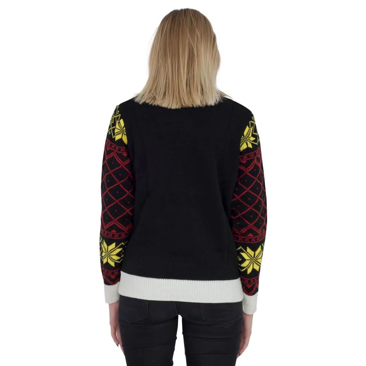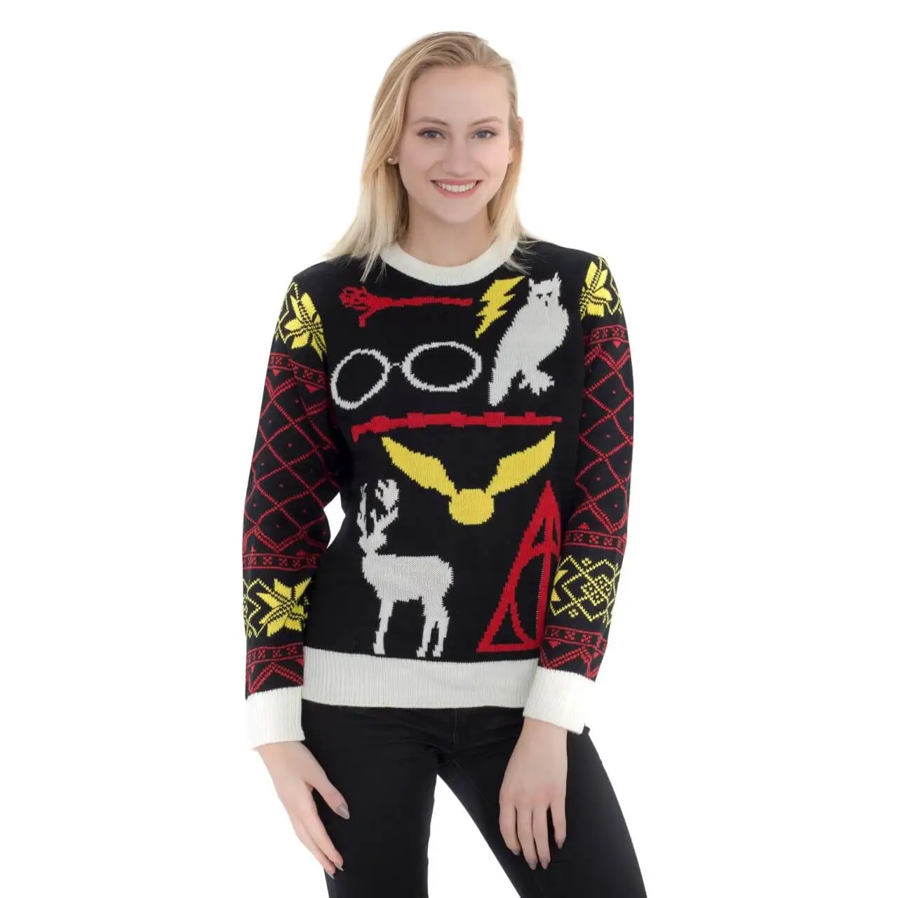 If you love Harry Potter then you, no doubt, love Harry Potter and the Deathly Hallows. This officially licensed women’s Harry Potter Owl Deathly Hallows features a great collection of Harry Potter symbols in a great 8-bit design. We don’t know what’s cooler, Harry Potter or this officially licensed sweater. It might even be cooler than the movie itself. Regardless of what’s cool, we know that if you wear this Harry Potter ugly holiday jumper to your next party you’ll feel as tipsy as one of Santa’s elves who’s accidentally stumbled into Hogwarts.