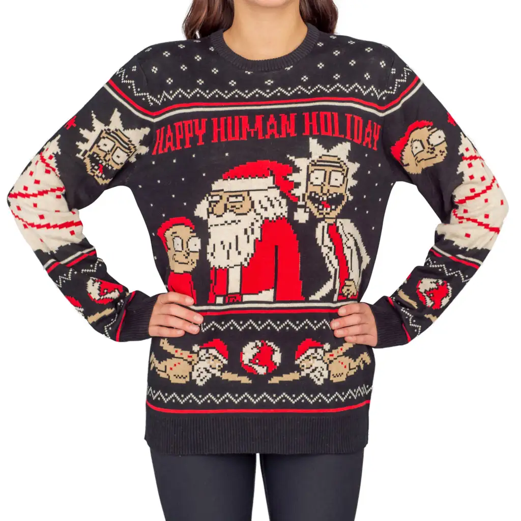 If you’re a super fan of the hit raunchy animated series Rick and Morty then you need this officially licensed Women’s Rick and Morty Happy Human Holiday ugly Christmas sweater – it’ll make you feel as tipsy as one of Santa’s elves.